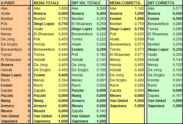 I CINQUANTA GIOCATORI PIU' "PESANTI" PER LA CLASSIFICA NEGLI ULTIMI CINQUE TURNI